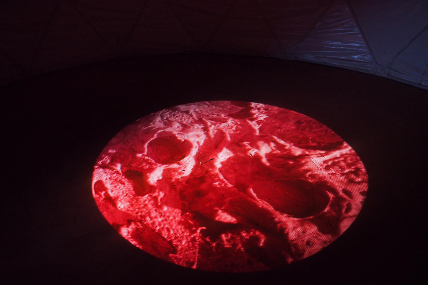 A Baker’s Dozen Projection, 2020 Projection of A Baker’s Dozen: A Lunar Study in Variations of Size and Shape’ onto the bare ground at The Earth Sanctuary, central Australia. Copyright Anna Dakin