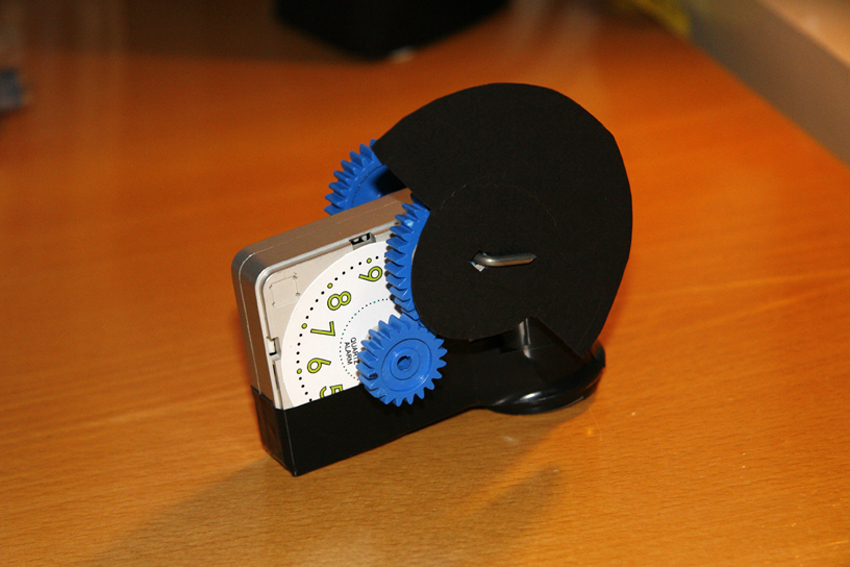 Mark I Time-Lapse Camera(2) Film canister pinhole camera attached to the side of alarm clock (front view). Camera just visible behind card shutter. Copyright Anthony Carr Like Loading...