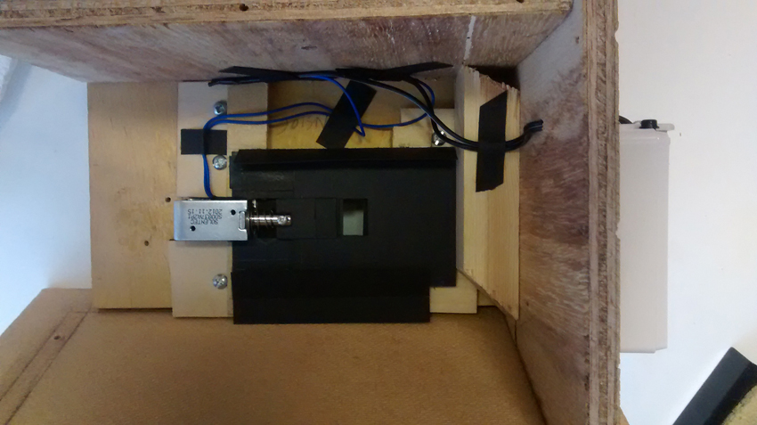 Mark VI.3 DAS Mechanism Image shows version MarkVI.3 (2016) which replaced the homemade LDR circuit with a twilight switch, solenoid and solar power. Again housed in a nestbox. Copyright Anthony Carr Like Loading...